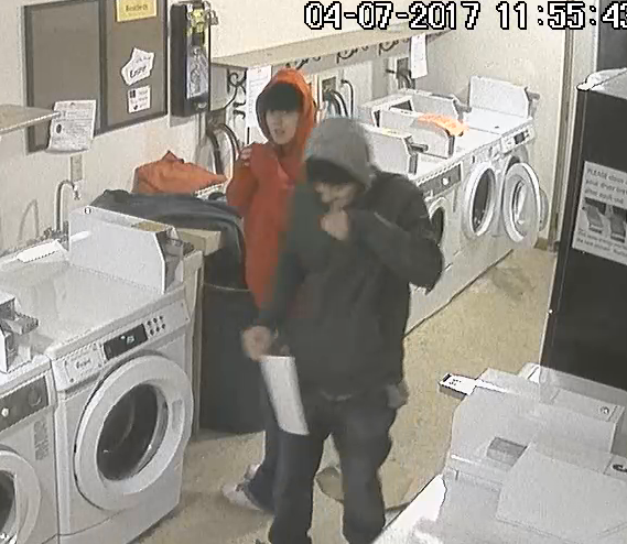 BELLINGHAM, Wash. – Bellingham Police are searching for two individuals who are suspected of breaking into a change machine and stealing hundreds of dollars while damaging the device beyond repair.