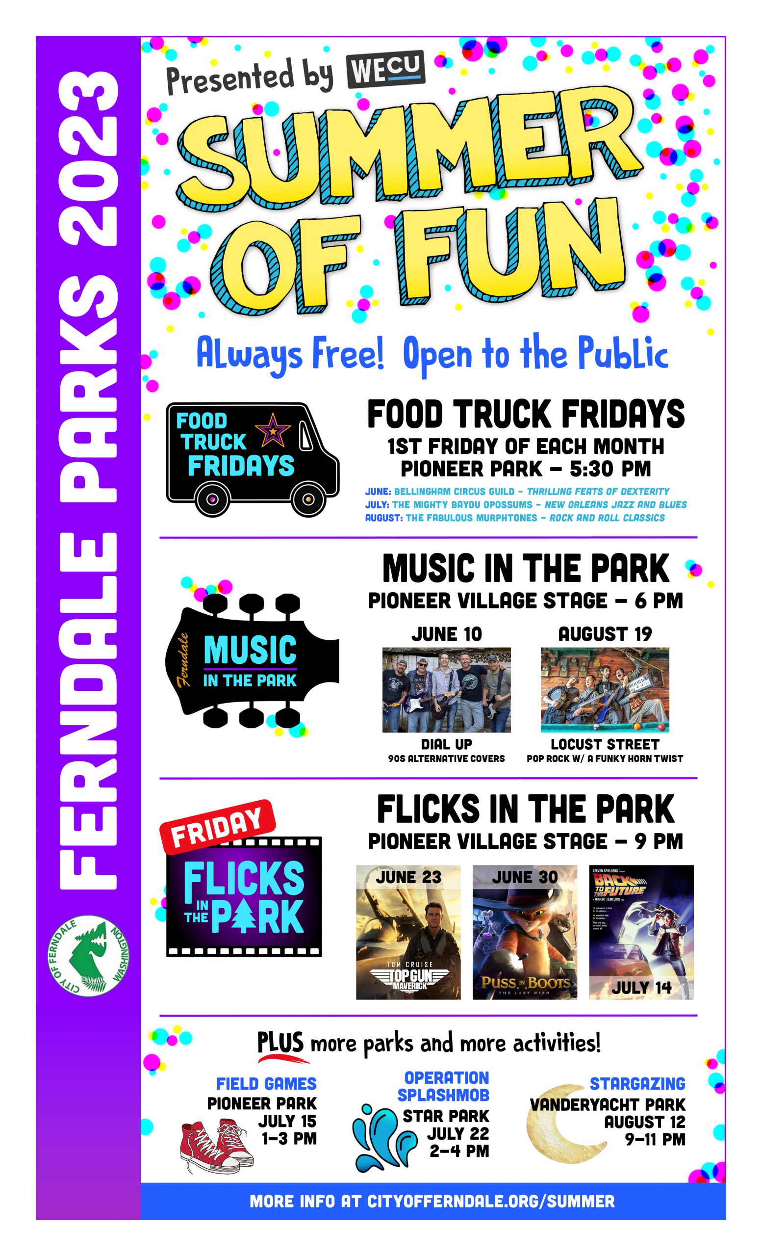 FERNDALE, Wash. – The City of Ferndale has released a full slate of parks activities for this summer.