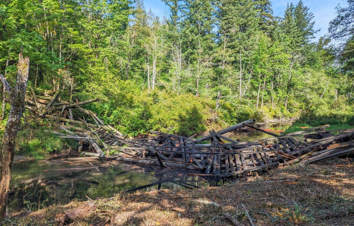 BELLINGHAM, WA – The old railroad trestle at Whatcom Falls Park is now safely on the ground.