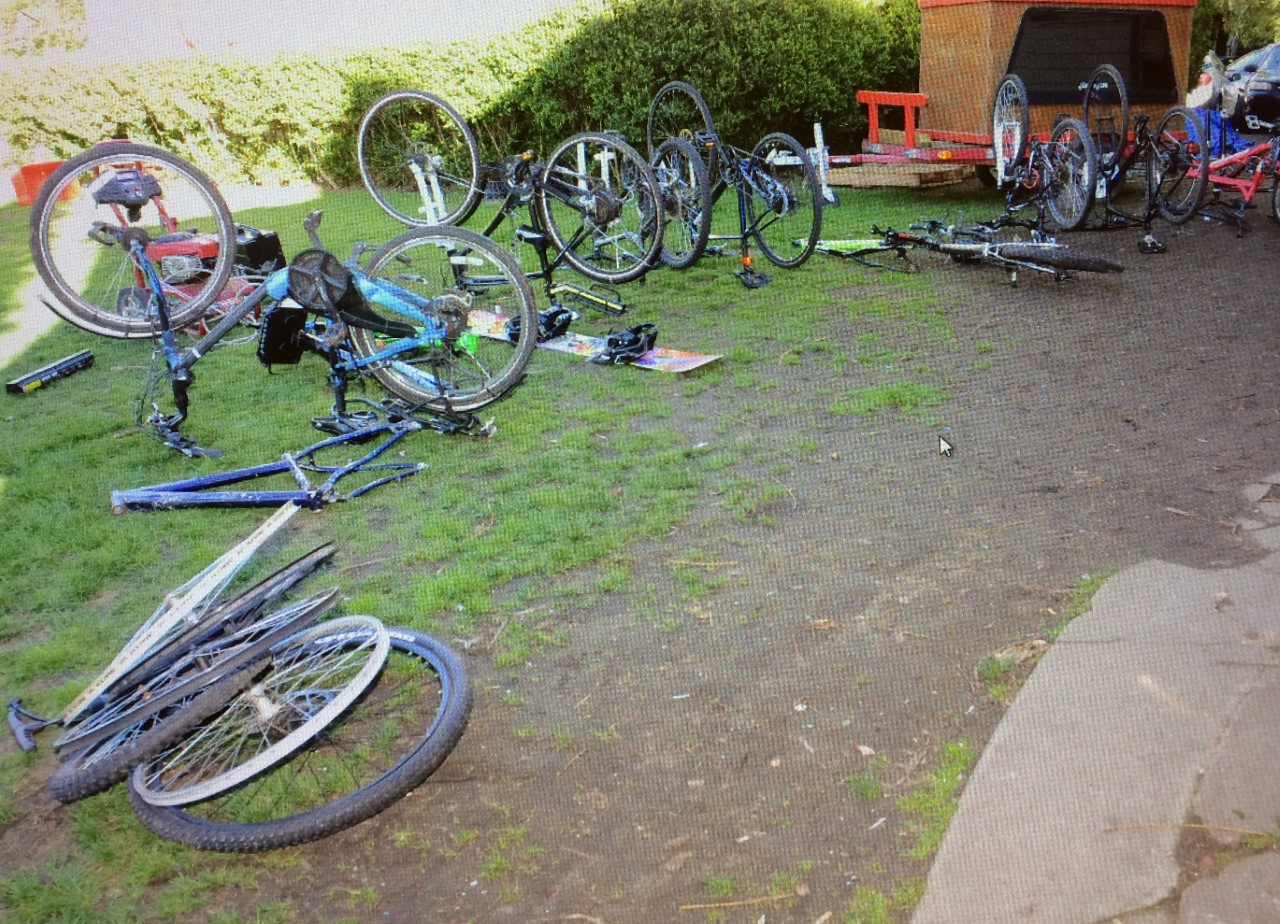 They found high-end bikes and bike frames, construction equipment and tools, electronics, a snowboard and a gun.