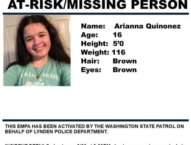 16-year-old Arianna Quinonez is missing from Lynden as of Saturday afternoon.